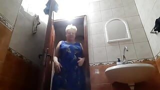 Zgodna plavuša sa masivnim prskanjem na kauču
